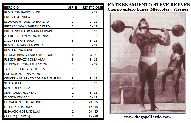 RUTINA ENTRENAMIENTO DE CUERPO ENTERO DE STEVE REEVES
