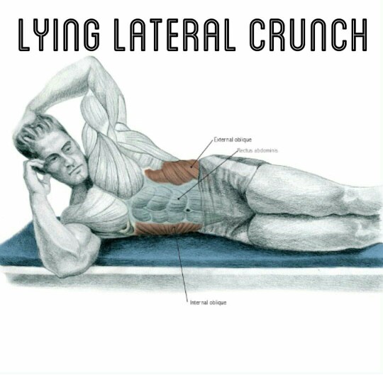 Los oblicuos externo e interno juegan el papel principal en este ejercicio, aunque el recto abdominal también está implicado. Los oblicuos se extienden desde el extremo del recto abdominal hasta los dorsales cubriendo cada lado del abdomen. Las fibras del oblicuo externo están situadas en diagonal, lo que las da la forma de una “V” cuando son vistas desde frente. Situadas por debajo de los oblicuos externos, las fibras de los oblicuos internos tienen forma de “V” invertida.