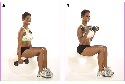 * Utiliza un peso que no te obligue a balancear las mancuernas para iniciar cada repetición. Emplear demasiado peso también fuerza a elevar los codos.