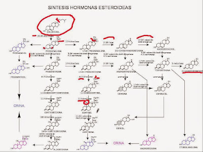 El LH provoca la conversión enzimática de colesterol en testosterona en las células de Leydig. De hecho, “colesterol” tiene mala reputación en los medios de comunicación, pero en realidad todas nuestras hormonas esteroides comienzan con el colesterol. (Vea la tabla a continuación.)