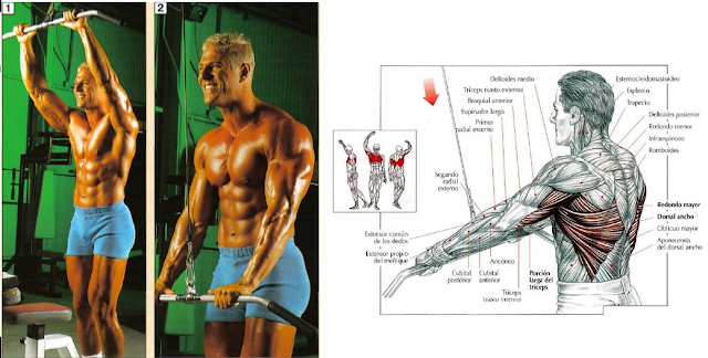Los músculos básicos que mueven la articulación del hombro son el dorsal mayor, el teres mayor y la zona inferior del pectoral mayor. Los músculos básicos implicados en la faja deltoidea son el romboide y el pectoral menor. El dorsal mayor cubre una amplia zona de la espalda. Los jalones con brazos rectos implican al músculo entero, pero sobre todo la parte inferior. El teres mayor trabaja con el dorsal mayor y está situado en la superficie externa de la escápula. En este ejercicio está implicada la zona inferior (sobre el esternón) del pectoral mayor.